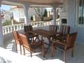 überdachte Terrasse mit Außengrill und Gartenmöbeln |